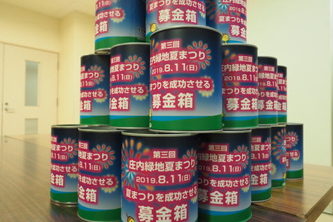 庄内緑地夏まつりの募金箱を、近隣の店舗や施設に設置いただいております。見かけた際には、ぜひ募金にご協力をいただけますと幸いです。